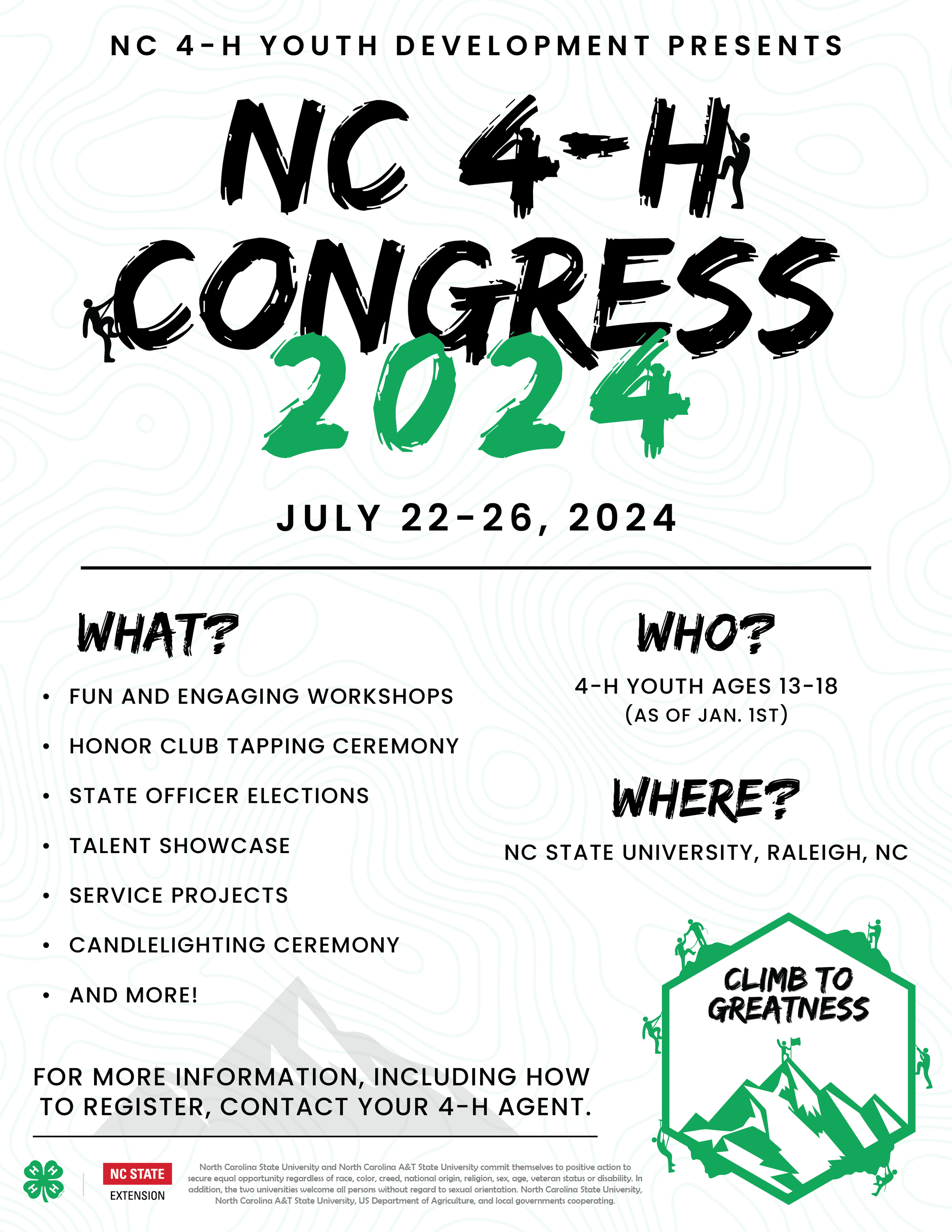 The Climb to Greatness campaign was developed as the official statewide theme for North Carolina 4-H during the 2023–2024 program year.